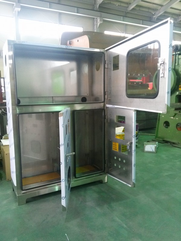 하단부는 격벽처리되어 DOOR가 2개인 전기조작판넬입니다.